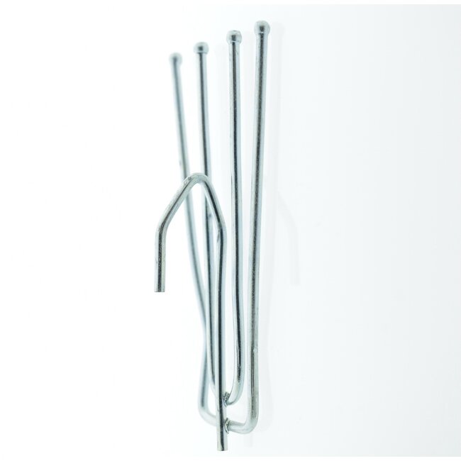 Mit diesem Haken bilden Sie die Falte mithilfe der 4 Beinchen des Hakens. Die Gesamtlänge beträgt 74 mm und der Abstand des Kopfes ist 25 mm. Dadurch hängt Ihr Vorhang sauber vor der Schiene und schließt bündig mit der Decke ab.