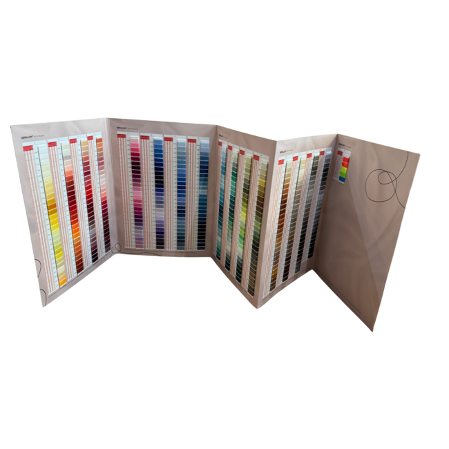 Mit dieser luxuriösen Garnkarte bestimmen und bestellen Sie immer die richtige Farbe Seralon Garn der Marke Mettler.