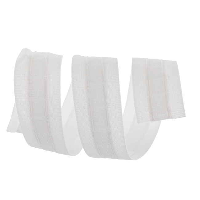 Dieses Kräuselband wird verwendet, um den Vorhang zu kräuseln anstatt zu falten, das Band kann auch zur Herstellung von Draperien verwendet werden. Dieses Band ist normales Faltenband, aber mit 2 Schnüren unter und über den Hakenösen versehen.