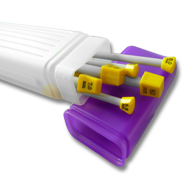 In diesen Stricknadelbehältern, aus transparentem Kunststoff gefertigt, können Stricknadeln sicher aufbewahrt und transportiert werden.
