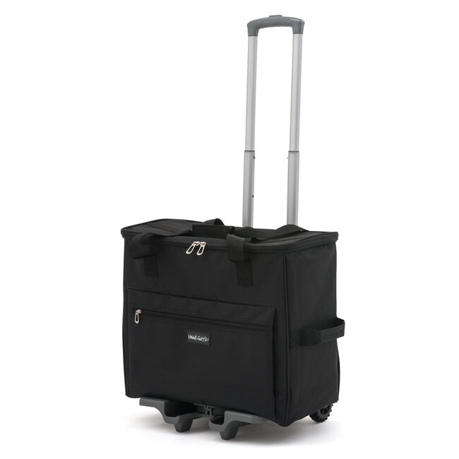 Nähmaschinentasche mit abnehmbarem, faltbarem Trolley für einfachen Transport.