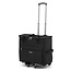 Der Trolley bietet eine stabile Basis mit Rollen und hat einen ausziehbaren Griff.
