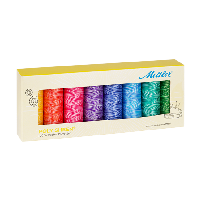 Het klassieke borduurgaren onder de Mettler naaigarens, maar dan met een speciaal tintje! Met ons borduur- en naaigaren POLY SHEEN MULTI koopt u precies het juiste garen voor kleurrijke creaties. Vertrouwde kwaliteit in een stijlvol design: het naaigaren is scheurvast, extreem slijtvast, kleurecht en prachtig decoratief. Dit is mogelijk dankzij de speciale samenstelling: de trilobale draaddoorsnede zorgt ervoor dat het naaigaren niet alleen de hoogste spanningen kan weerstaan, maar ook meer licht reflecteert door het grotere oppervlak. Het resultaat is een uitzonderlijk mooie glans die conventionele borduur- en decoratieve naaigarens overtreft.