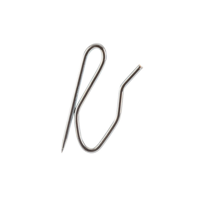 Prik haken in de kleine variant (25mm hoog) hebben een scherpe punt die u op verschillende hoogtes in het stof of band kunt steken. Deze prikhaken zijn roestvrij en worden voornamelijk toegepast bij stolpplooi en studioplooi.
